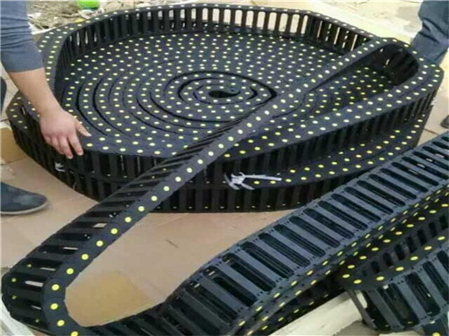 塑料拖鏈是一種傳動防護裝置,隨著工業自動化進程的日益加快,越來越多的自動化設備得到廣泛使用。特別是對于危險度高、勞動強度大、易疲勞的作業場所實現自動化生產顯得日趨緊迫。自動化設備中有大量的配線、配管需要得到保護,使其在穩定、安全的工作環境中運行。由于塑料拖鏈一般應用在機床、機械等的電纜、油管、氣管、水管、風管上,起到牽引和保護的作用,因此拖鏈在機床、機械臂等技術領域用得非常廣泛。