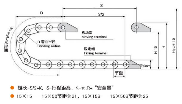 15系列塑料拖鏈規格表